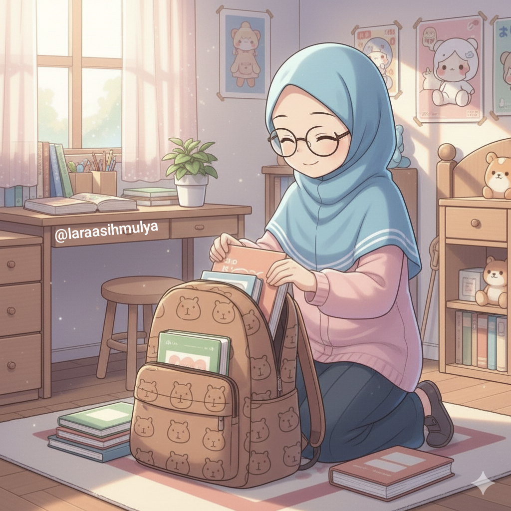 Next, Mari siapkan alat tulis dan buku pelajaran. Tentunya grup kelas sudah ramai kan ya? ๐ Sudah dikasih semangat jadwal dan peralatan apa saja yang harus dibawa.