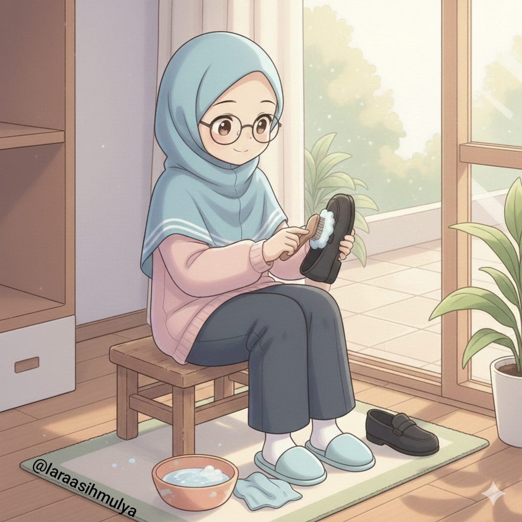 Walaupun yang jelas terjadi adalah basah semua ๐. Bagian ini wajib di lakukan seminggu sebelum masuk sekolah. Kalau terpaksa mepet banget, ya udah di sikat-sikat aja. Sama dibersihkan pake tisu basah.ย ๐คญ